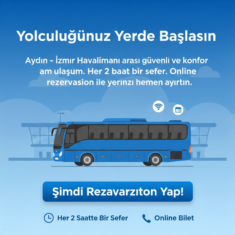 Aydın – İzmir Adnan Menderes Havalimanı arası güvenli ve konforlu ulaşım. Her 2 saatte bir karşılıklı seferlerimizle, yolculuğunuzu hemen planlayın.